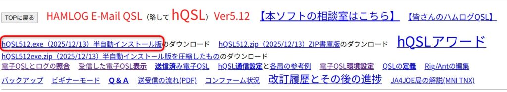hQSLダウンロードページより最新の半自動インストール版をダウンロードしてください。