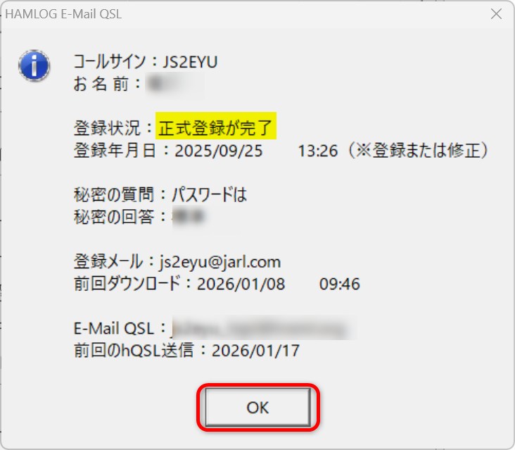 Turbo HAMLOGユーザー登録を行うにはJARLのEメール転送サービスが必須であり、JARL会員である必要があります。