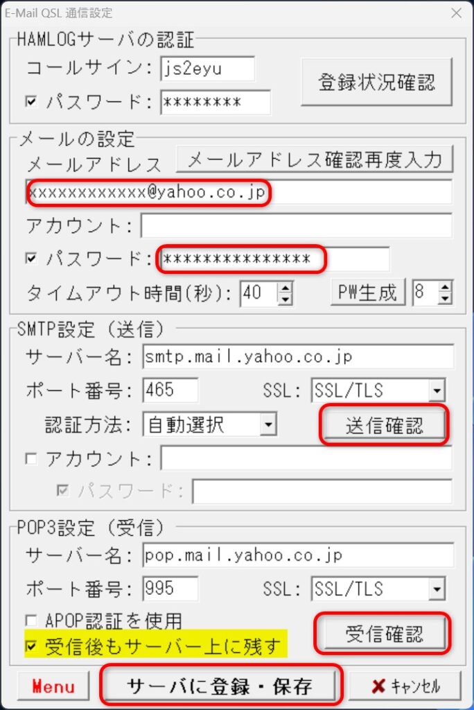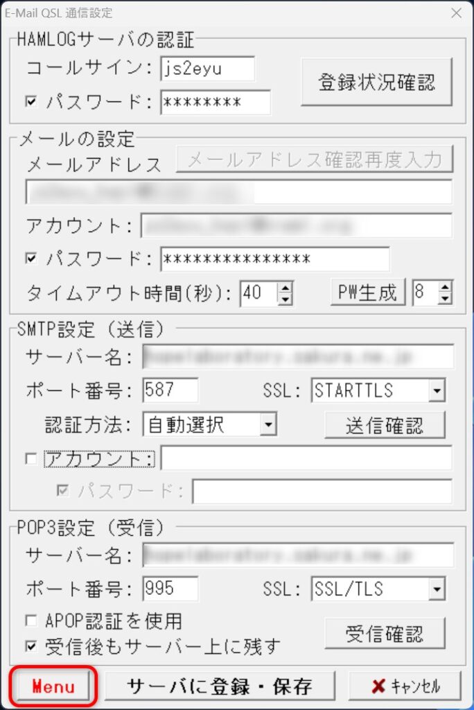 HAMLOGサーバの認証でコールサイン、パスワードを入力して