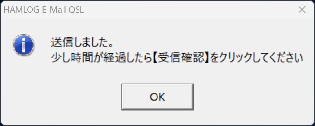 「送信確認」を押して少し時間をおいて「受信確認」ボタンを押す。