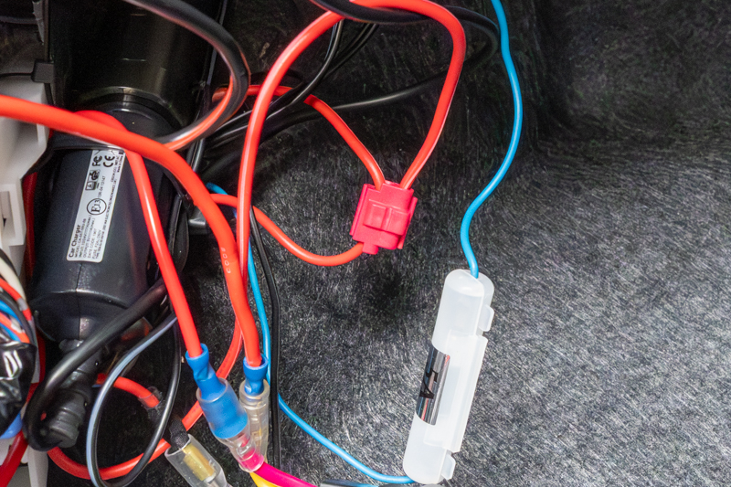 万一断線しても、車体に電線が接触しないように絶縁処理をしておきましょう。(車体側に絶縁テープ貼るとか)