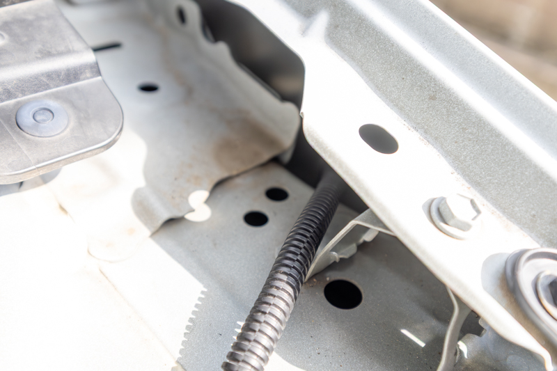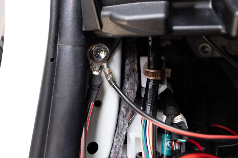 ダッシュボードステーやフレームパイプでなく、直接シャーシに固定されているネジにつなげましょう。