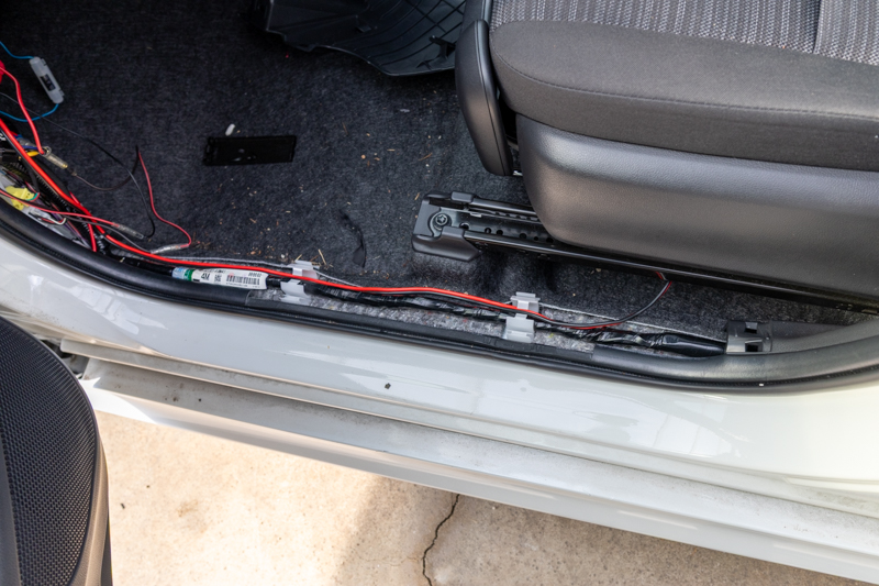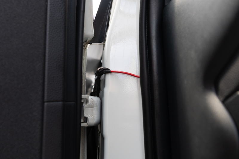ただし、この方法だと見た目が美しくないのと、ドアのウエザーストリッパーの下に電線を通す必要が
