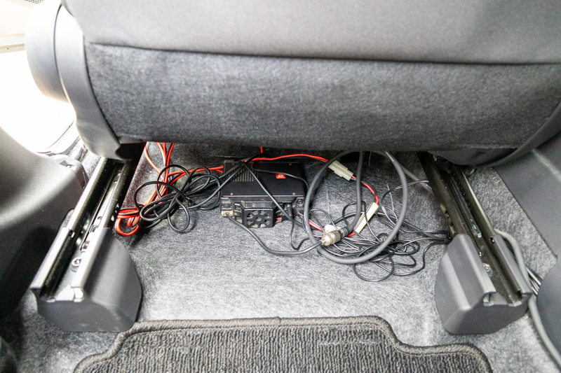 TM-733は操作パネル、マイク延長ケーブルがオプションであるので、シート下に配置しました。