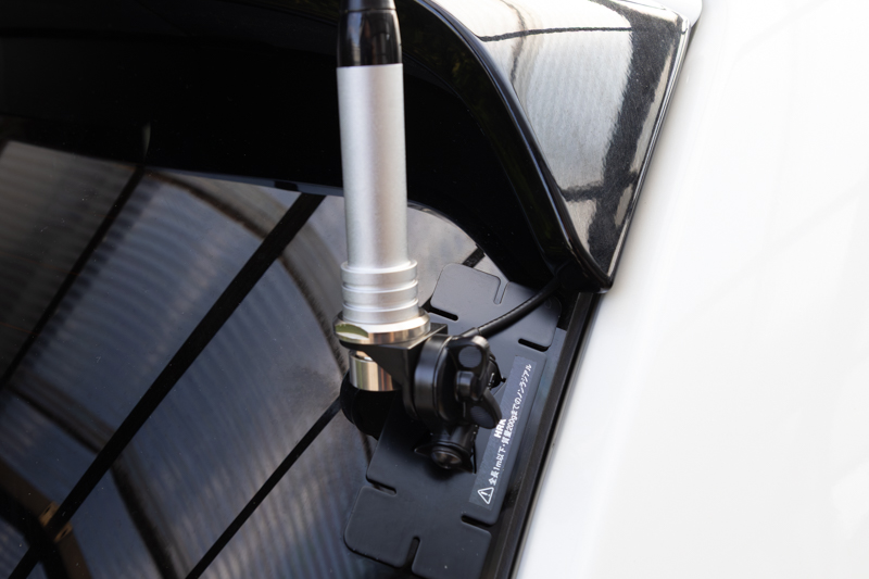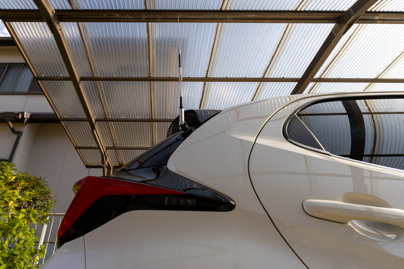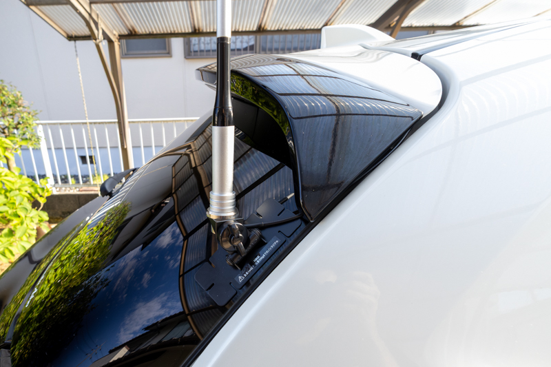 今時のクルマは直線的な場所が少なく、ハッチバックにアンテナ基台付けると変な位置になるので、