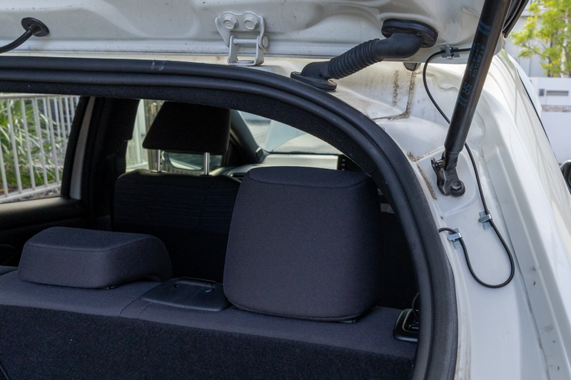 細い部分は、リアハッチのウエザーストリップの下を余裕で通す事ができました。