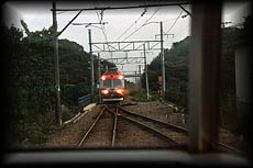 入れ替えのための待避場がある。 (帰りの317で撮影) 帰りは7022白帯格下げパノラマカー。 | ||